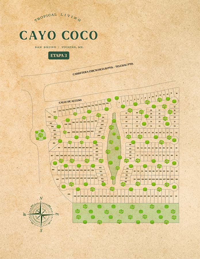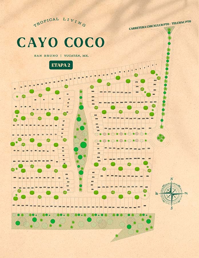 Desarrolla la vivienda de tus sueños en Cayo Coco, donde cada lote cuenta con energía eléctrica a pie de lote, acceso directo a la laguna y al malecón, y amenidades exclusivas por etapa y del desarrollo. Con metrajes desde 160 m², disfruta de una casa club, terrazas, mirador, parque, zona de asadores, jogging, pet park y piscina. Ubicado en la costa Esmeralda de Puerto de San Bruno, Yucatán, Cayo Coco es ideal para quienes buscan un entorno natural y de playa.